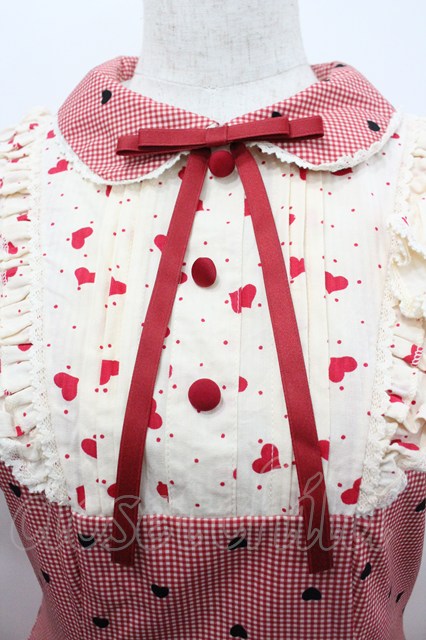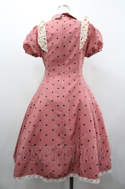With Puji / ハートチェックプリント半袖ワンピース 赤チェックx黒 I-26-02-01-028-EL-OP-SA-ZI [2100060000050257-I-26-02-01-028-EL-OP-SA-ZI]