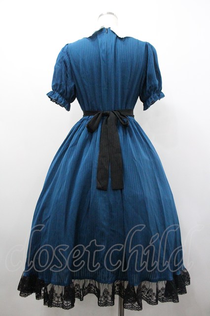 With Puji / 薔薇レース襟ストライプ半袖ワンピース M 青X白 I-26-02-01-026-EL-OP-SA-ZI