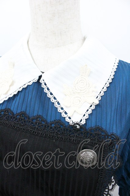 With Puji / 薔薇レース襟ストライプ半袖ワンピース M 青X白 I-26-02-01-026-EL-OP-SA-ZI [2100060000050261-I-26-02-01-026-EL-OP-SA-ZI]