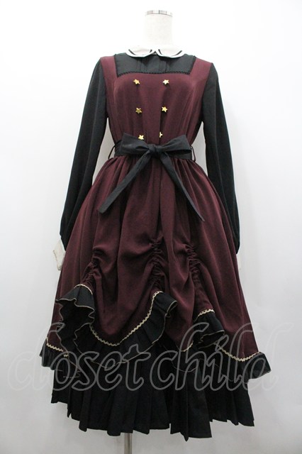 With Puji / 重ね風デザインワンピース M 黒xボルドー I-26-02-01-027-EL-OP-SA-ZI