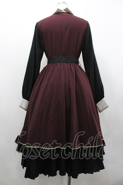 With Puji / 重ね風デザインワンピース M 黒xボルドー I-26-02-01-027-EL-OP-SA-ZI [2100060000050259-I-26-02-01-027-EL-OP-SA-ZI]