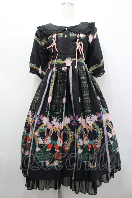 Toberun sky / うさぎさんプリント半袖ワンピース 黒Xピンク I-26-02-01-029-LO-OP-SA-ZI [2100060000050274-I-26-02-01-029-LO-OP-SA-ZI]