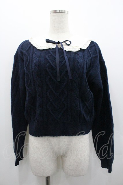 Emily Temple cute / 衿付きケーブル編みニット ネイビー I-26-02-01-077-ET-BL-TE-ZI [2100060000050250-I-26-02-01-077-ET-BL-TE-ZI]