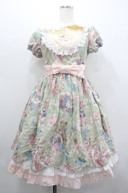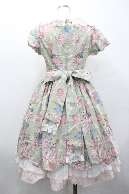 Angel's Heart / くまBOX総柄半袖ワンピース M グリーン I-26-02-01-025-EL-OP-SA-ZI