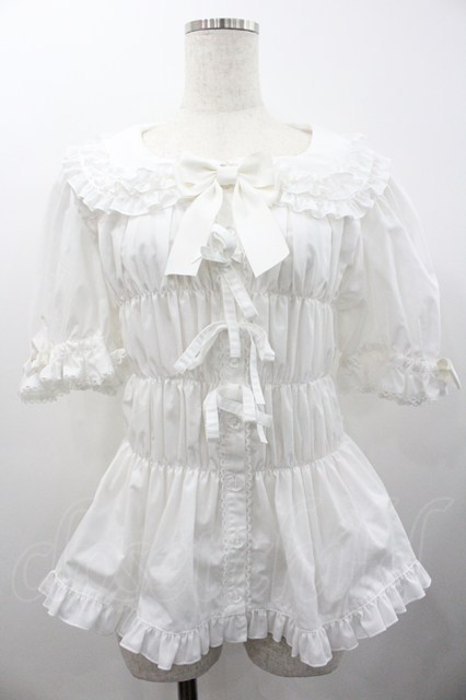 metamorphose / 【プラスサイズ】シャーリング半袖ブラウス 2 白 I-26-02-01-094-ME-BL-SA-ZI