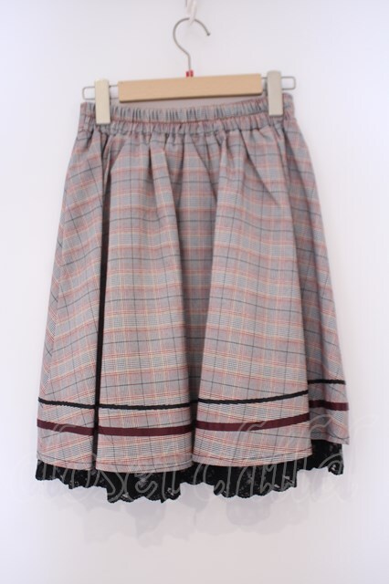 axes femme POETIQUE / 釦デザインチェックスカート M ワイン O-26-02-03-039-AX-SK-OW-OS