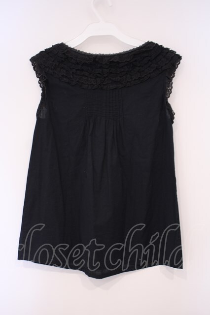 Jane Marple Dans Le Salon / コットンレーストリミングノースリーブブラウス M クロ O-26-02-03-049-JM-BL-OW-OS
