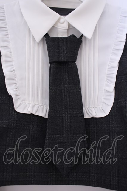 pium / ネクタイ付きスクエアフリル長袖トップス F ブラックチェック O-26-02-03-047-0-TO-OW-OS [2100080000073880-O-26-02-03-047-0-TO-OW-OS]