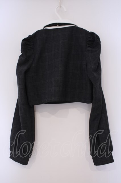 pium / ネクタイ付きスクエアフリル長袖トップス F ブラックチェック O-26-02-03-047-0-TO-OW-OS