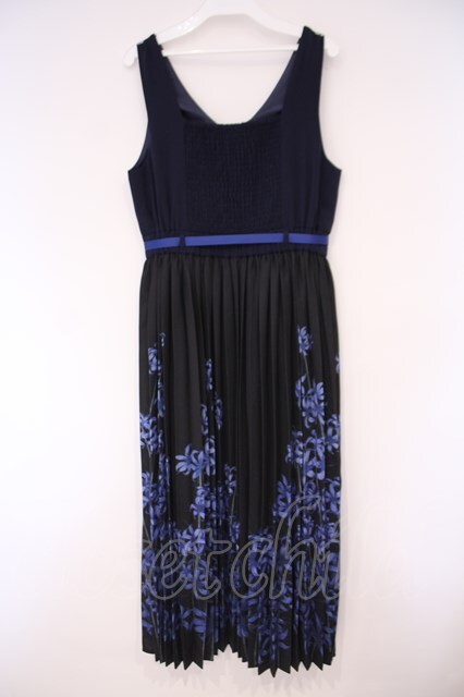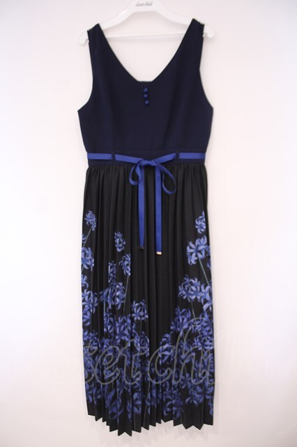axes femme / 彼岸花柄プリーツジャンスカ F クロ×アオ O-26-02-03-018-AX-OP-OW-OS