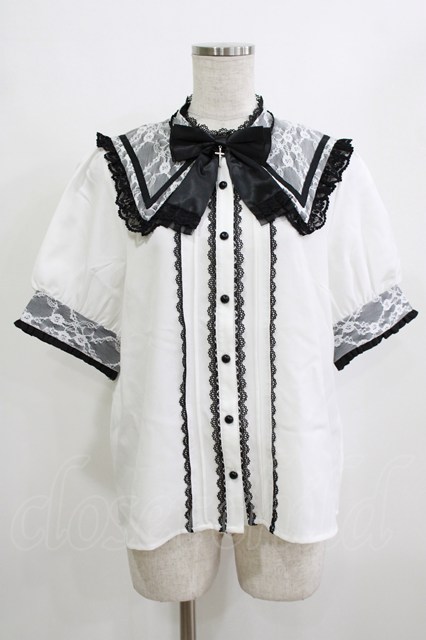 DearMyLove / 十字架リボンセーラーレース襟ブラウス LL オフ/ブラック H-26-02-05-1052-EL-TO-NS-ZH