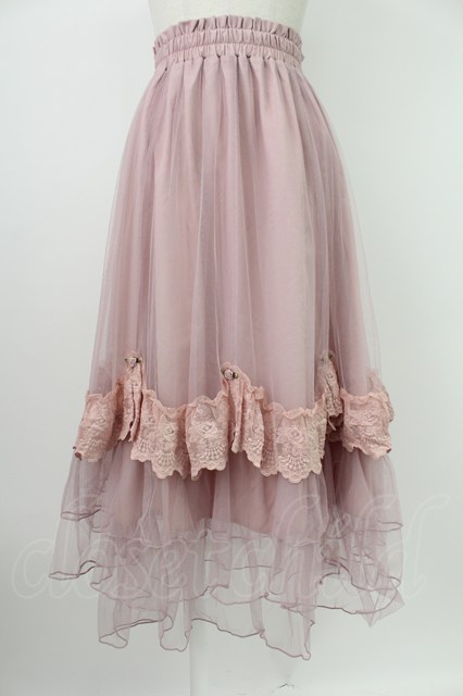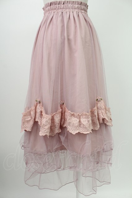 axes femme / ローズ付ドレープチュールスカート ピンク T-26-02-07-012-AX-SK-SA-ZT