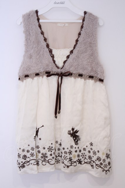 axes femme / フロッキープリントアウタータンク M 生成り×ブラウン O-26-02-03-1005-AX-TO-IG-OS