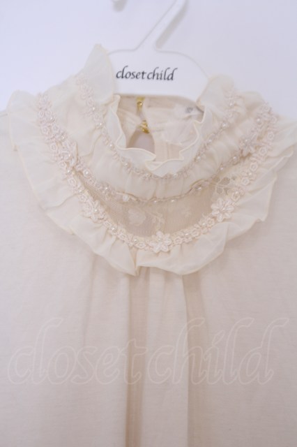 axes femme / スタンド襟レース透けプルオーバー M アイボリー O-26-02-03-1008-AX-TO-IG-OS