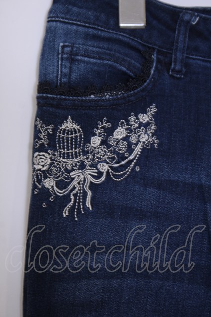 axes femme / 鳥かご刺繍デニムパギンス S インディゴ O-26-02-03-1018-AX-PA-IG-OS