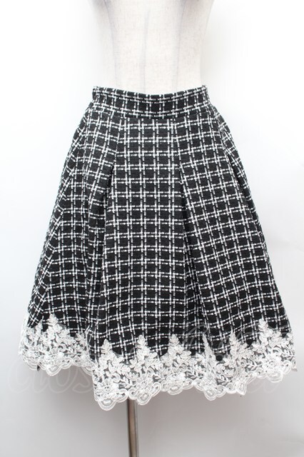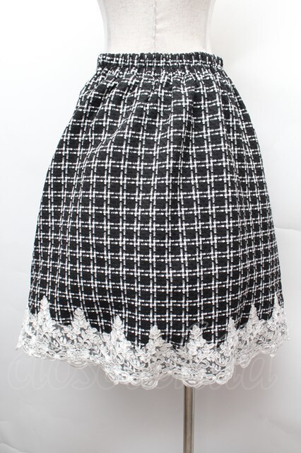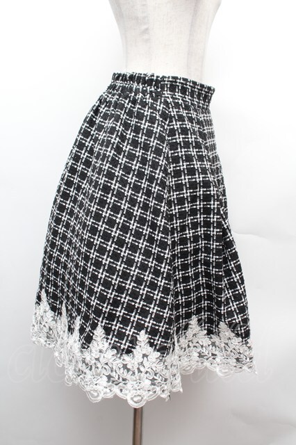 axes femme POETIQUE / 裾レースツイードスカート 黒x白 S-26-02-04-038-AX-SK-HR-ZS