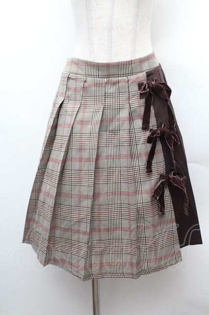 axes femme POETIQUE / プリーツ切替チェックスカート ブラウン S-26-02-04-040-AX-SK-AS-ZS