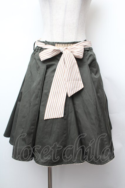 axes femme / ストライプリボンスカート カーキ S-26-02-04-053-AX-SK-HR-ZS [2100020000037266-S-26-02-04-053-AX-SK-HR-ZS]