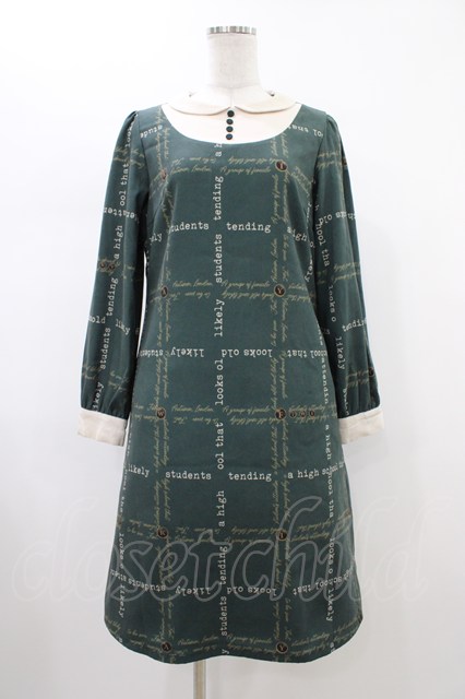 Fi.n.t / ヨーク切替タイプライター柄ワンピース Free グリーン H-26-02-09-030-CA-OP-NS-ZH