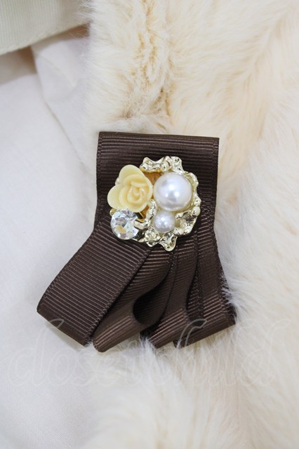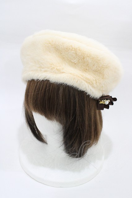 axes femme / リボンブローチ付ファーベレー 生成り H-26-02-09-007-AX-AC-NS-ZH