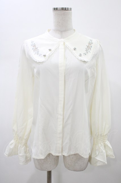 axes femme / ローズ刺繍ビッグカラーブラウス Free 生成り H-26-02-09-052-AX-BL-NS-ZH