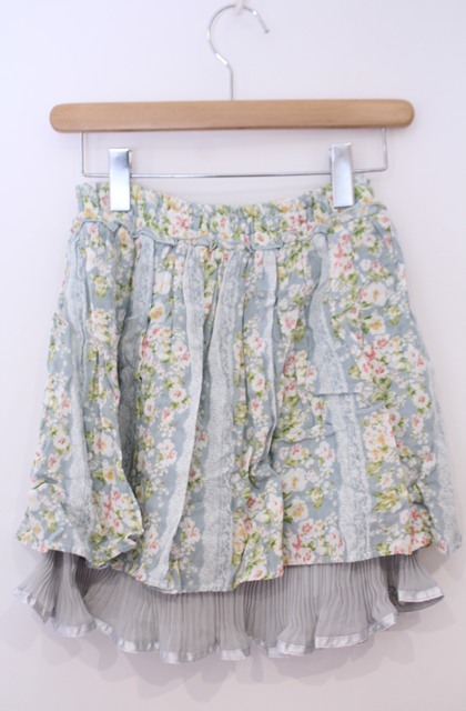 axes femme / 裾プリーツ使い花柄スカート M サックス O-26-02-04-043-AX-SK-OW-OS