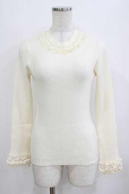 axes femme / パール使いニット M オフ H-26-02-08-051-AX-TO-NS-ZH
