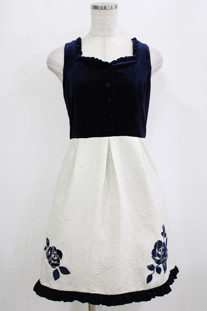 an another angelus / ベロア&ローズ柄切り替えジャンパースカート Free NAVY H-26-02-08-029-CA-OP-NS-ZH
