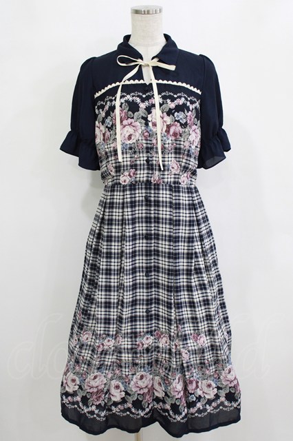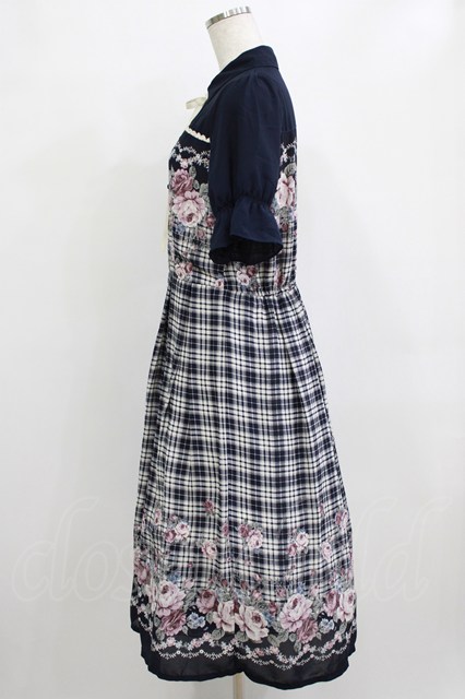 axes femme / フラワー×チェックワンピース M ネイビー H-26-02-08-014-AX-OP-YZ-ZH [2100030000060849-H-26-02-08-014-AX-OP-YZ-ZH]