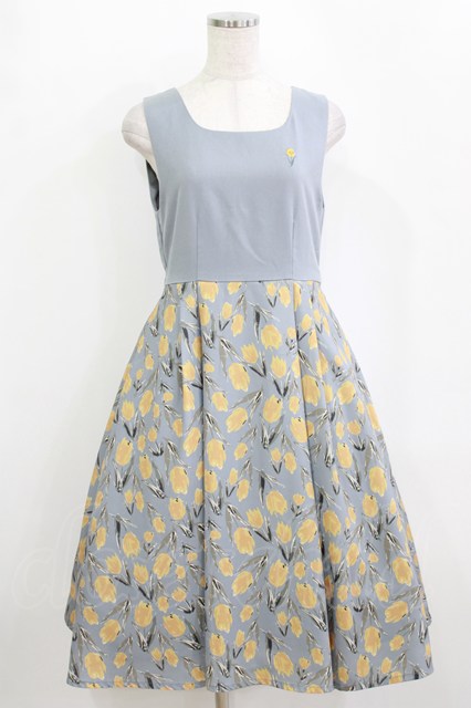 Fi.n.t / 刺繍入りチューリップ柄ジャンパースカート Free SAX H-26-02-08-021-CA-OP-NS-ZH