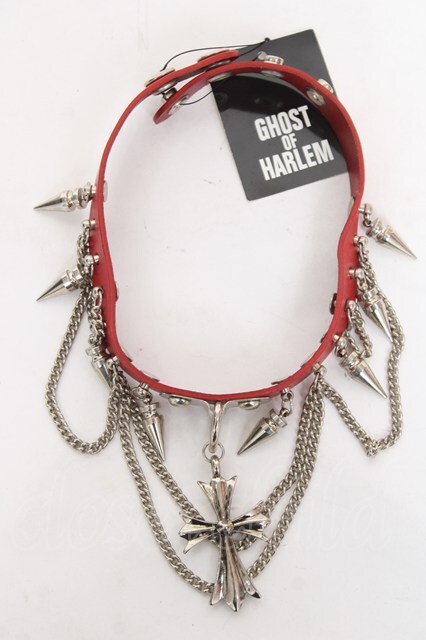 GHOST of HARLEM / メタルクロスチェーン付きスタッズチョーカー 赤 Y-26-02-04-017-GL-AC-SZ-ZY