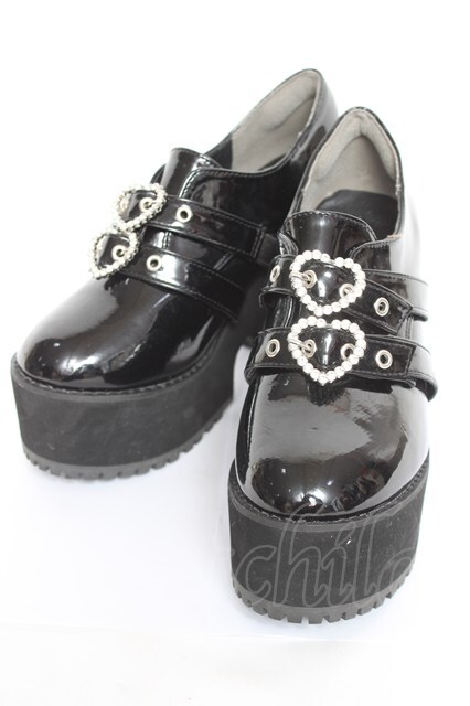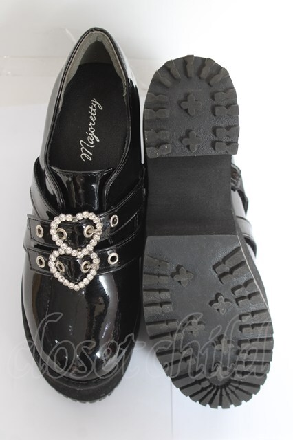 majoretty / ハートビジュー厚底サンダル 黒 Y-26-02-04-060-LO-SH-SZ-ZY