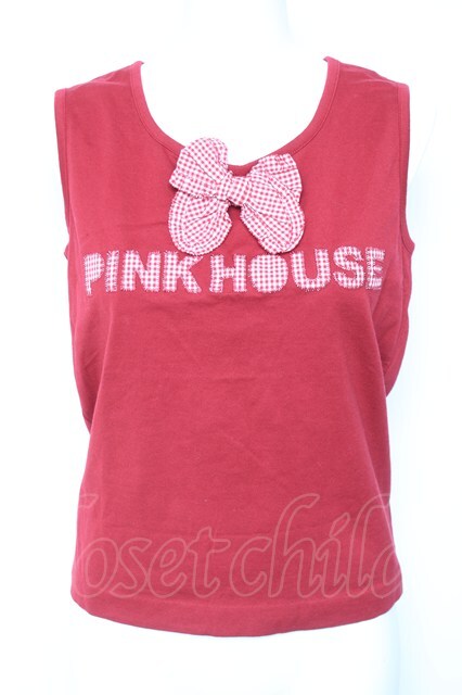 PINK HOUSE / ロゴギンガム×リボンタクトップ 赤 Y-26-02-04-084-LO-TO-SZ-ZY [2100070000060821-Y-26-02-04-084-LO-TO-SZ-ZY]