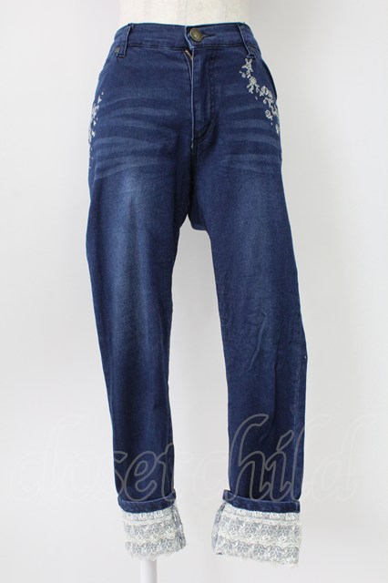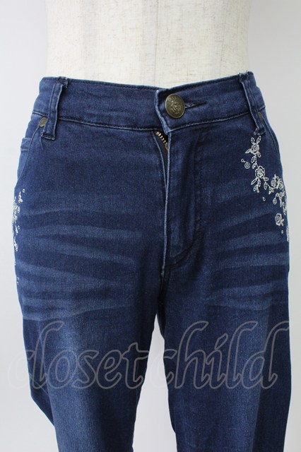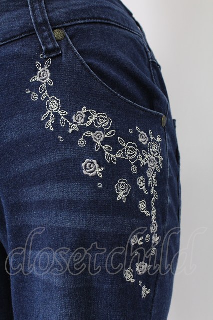 axes femme / 薔薇刺繍パンツ S インディゴ T-26-02-10-009-AX-PA-IG-ZT