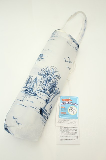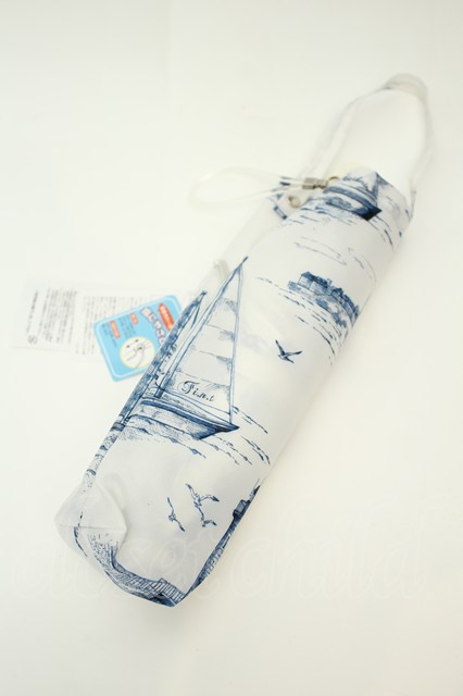 an another angelus / トワル風マリン柄折りたたみ傘 オフシロ×ブルー O-26-02-05-045-CA-ZA-IG-OS
