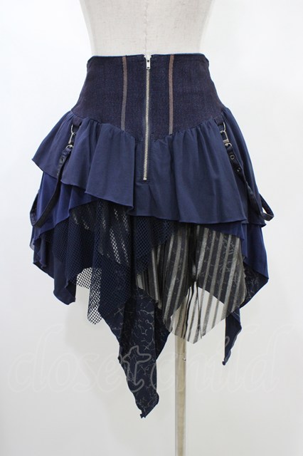 Ozz conte / 異素材切替イレギュラースカート ネイビー H-26-02-07-1021-OO-SK-KB-ZH