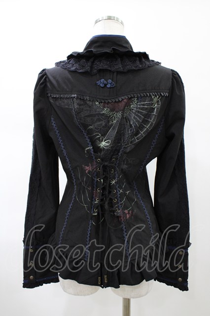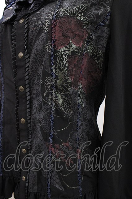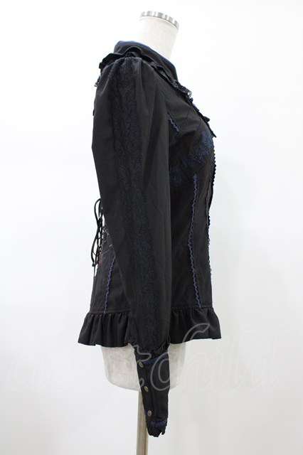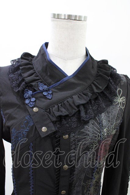 Ozz oneste / 着物衿ブラウス ブラック×ネイビー H-26-02-07-1011-OO-BL-KB-ZH