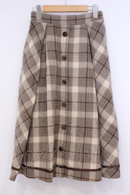 axes femme / シャギーチェックミディスカート ベージュ O-26-02-04-1052-AX-SK-IG-OS
