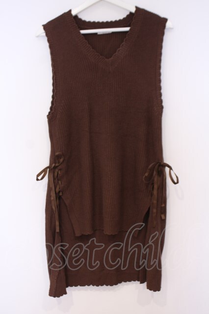 axes femme / レースアップニットベスト ブラウン O-26-02-04-1092-AX-TO-IG-OS