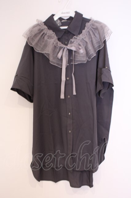 axes femme / チュールフリルカラー付シャツ チャコール O-26-02-04-1065-AX-BL-IG-OS