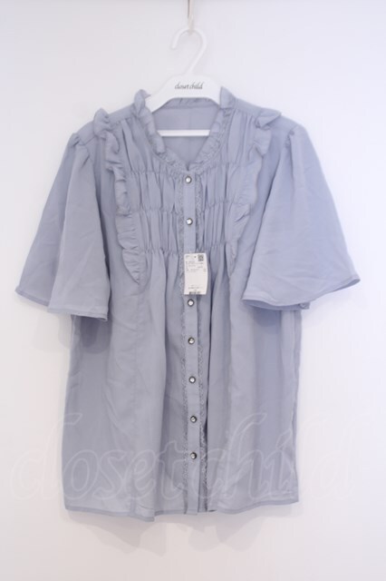 axes femme / ギャザーデザインフレア袖ブラウス L サックス O-26-02-04-1110-AX-BL-IG-OS