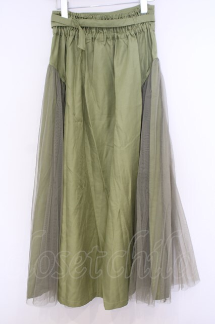axes femme / サイドチュールロングスカート グリーン O-26-02-04-1077-AX-SK-IG-OS [2100080000069635-O-26-02-04-1077-AX-SK-IG-OS]