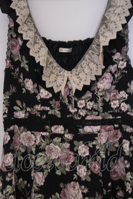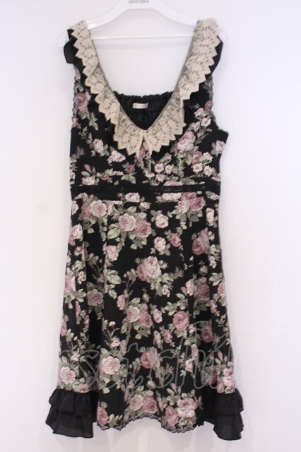 axes femme / 総バラ柄Backリボンワンピース クロ O-26-02-04-1113-AX-OP-IG-OS