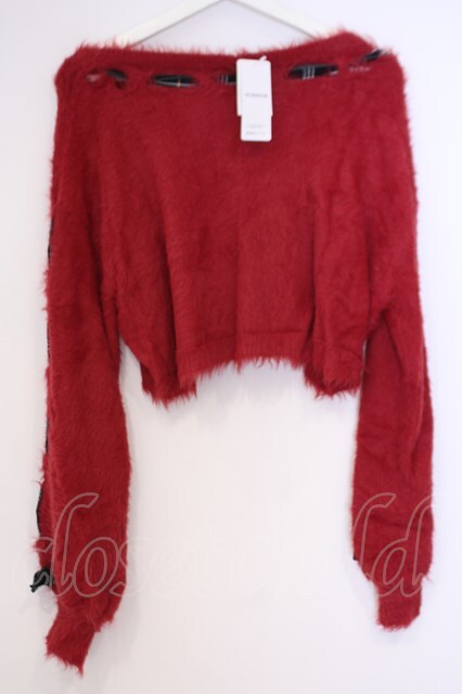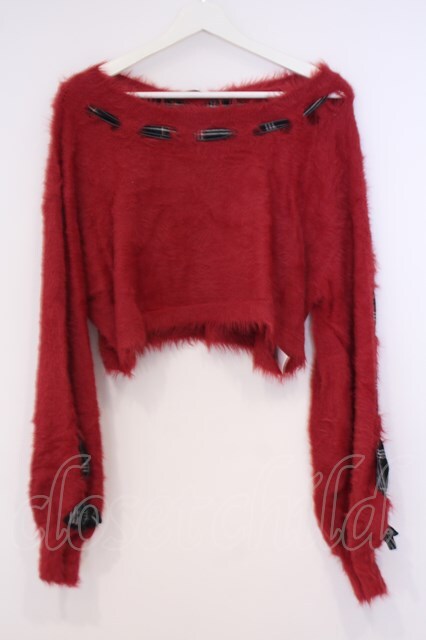 axes femme kawaii / ルーズシャギーニットプルオーバー アカ O-26-02-04-1066-AX-TO-IG-OS