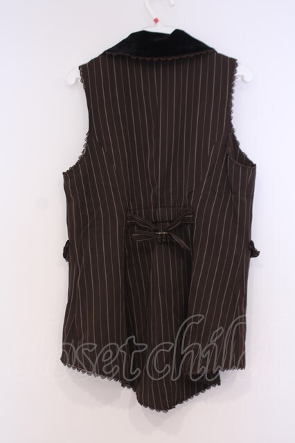 axes femme kawaii / ストライプロングベスト ブラウン O-26-02-04-1109-AX-JA-IG-OS