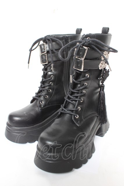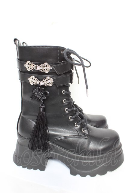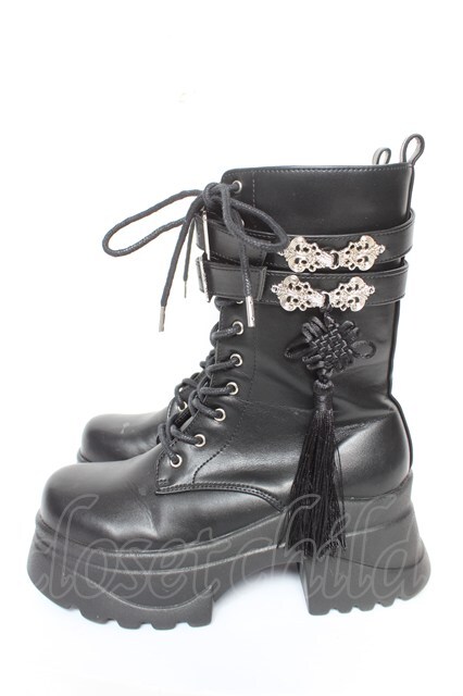 axes femme POETIQUE / チャイナ釦タンクソールブーツ L 黒 Y-26-02-05-049-AX-SH-SZ-ZY