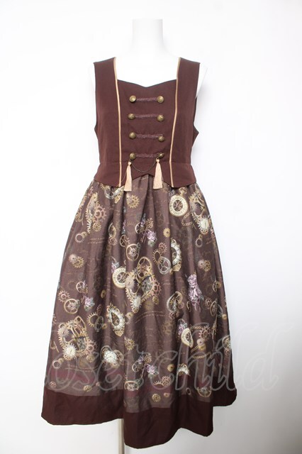 axes femme / レトロクロック柄ジャンスカ F 茶 Y-26-02-05-073-AX-OP-SZ-ZY