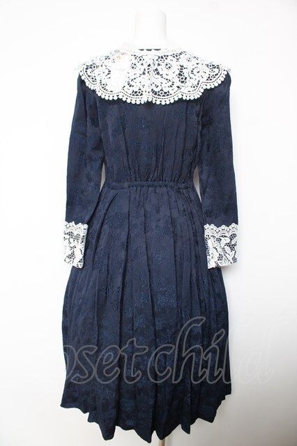 axes femme NOSTALGIE / レース襟付ジャガードワンピース M 紺 Y-26-02-05-090-AX-OP-SZ-ZY [2100070000060914-Y-26-02-05-090-AX-OP-SZ-ZY]
