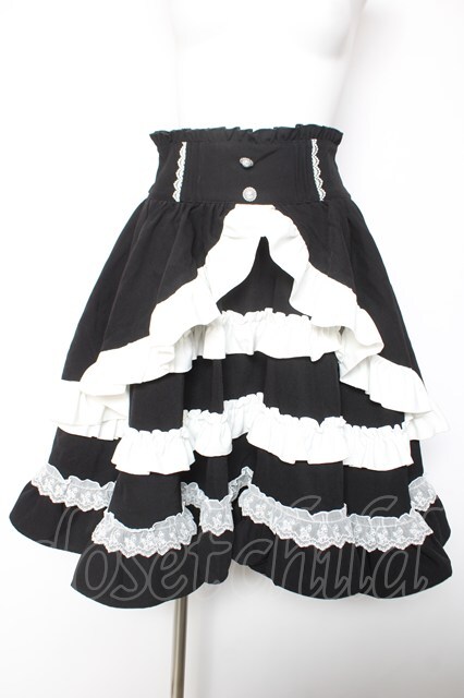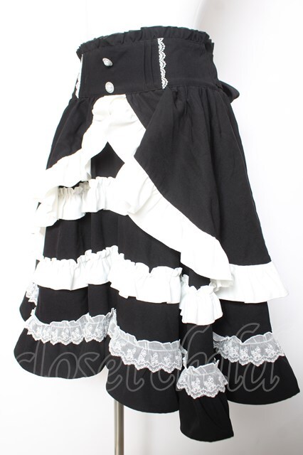 DearMyLoveEmily / フリルたっぷりリボンスカート L ブラック×ホワイト Y-26-02-05-102-LO-SK-SZ-ZY [2100070000060874-Y-26-02-05-102-LO-SK-SZ-ZY]