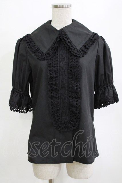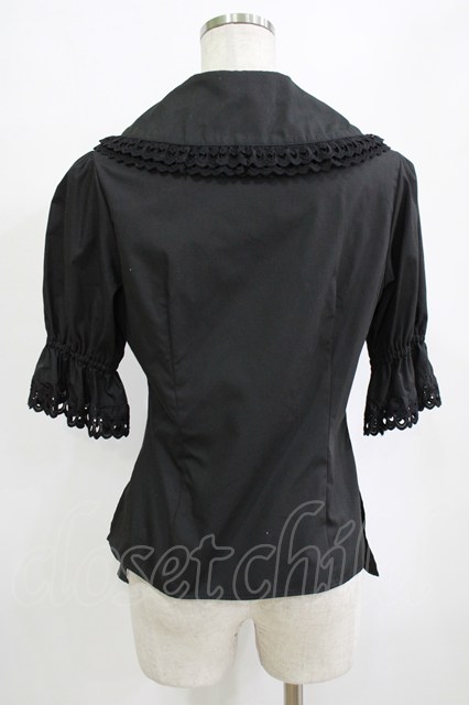 Moi-meme-Moitie / スカラップコットンレースパフ袖ブラウス 9号 黒 H-26-02-10-055-MO-BL-KB-ZH